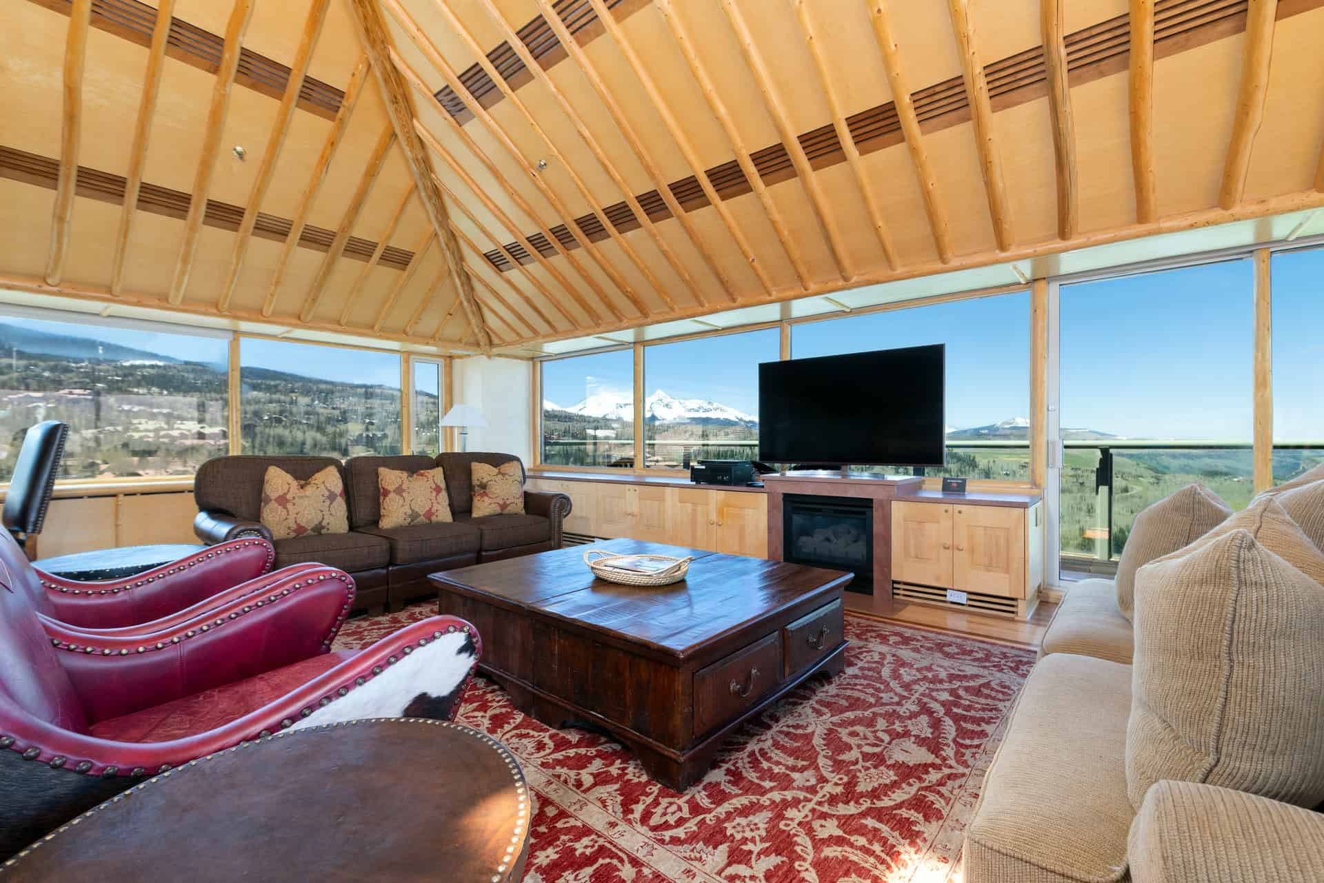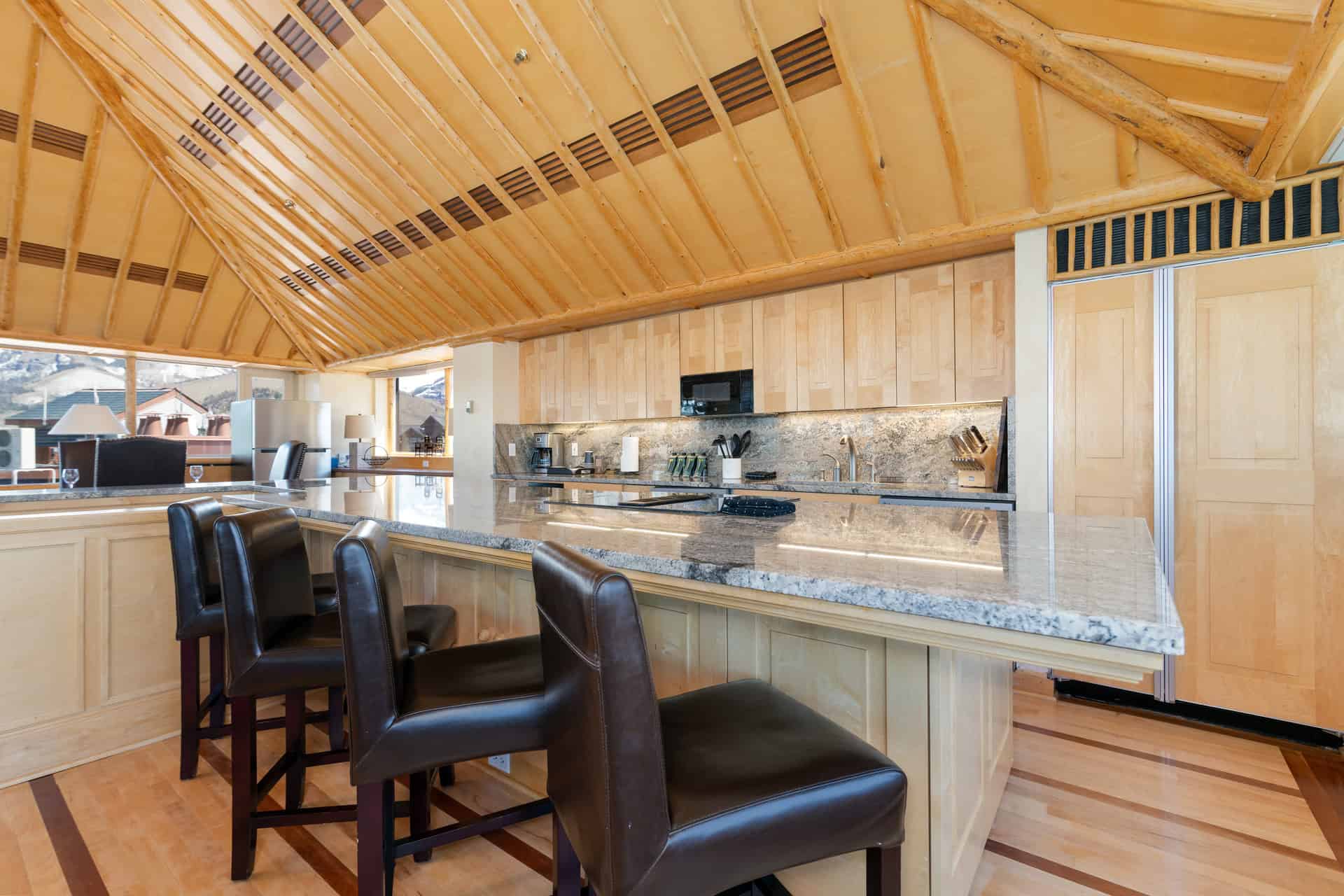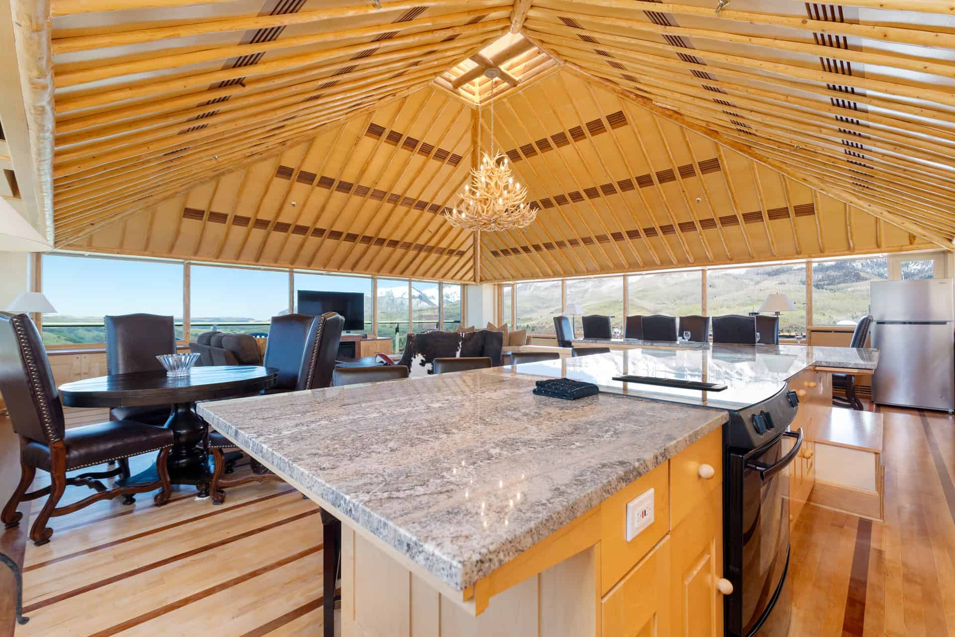 The views from this penthouse are unparalleled – boasting 270 degrees of views of the surrounding mountain ranges, offering views of the iconic Mount Wilson, the Telluride Golf Course, the Telluride Ski Resort and the San Sophia range really set this 4 bedroom penthouse apart. Located at the “TipTop” of the Peaks, this Penthouse is a three story, four bedroom, four bath accommodation, inviting you to experience the creme de la creme of everything Telluride has to offer. Your accommodation at Peaks Penthouse 830 also includes complimentary access to the Peaks Spa as well as the Peaks Ski Valet.