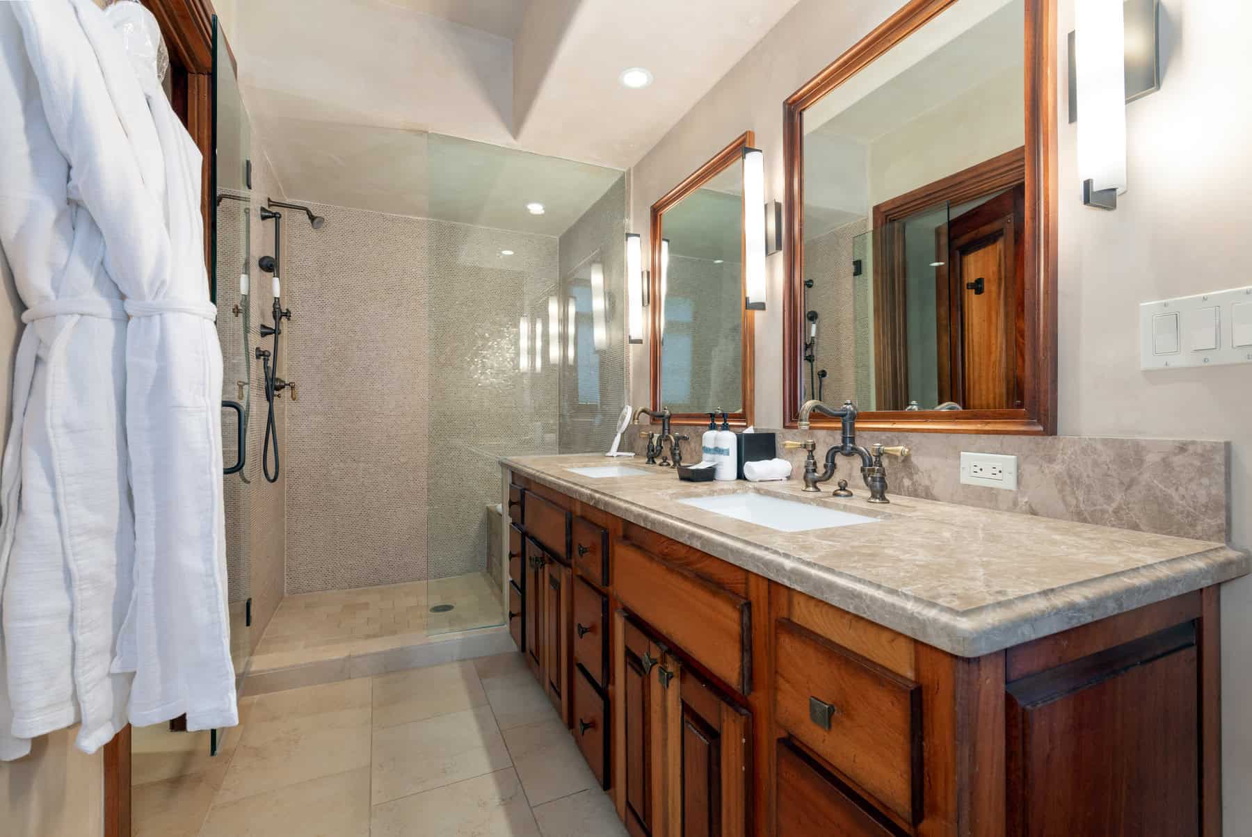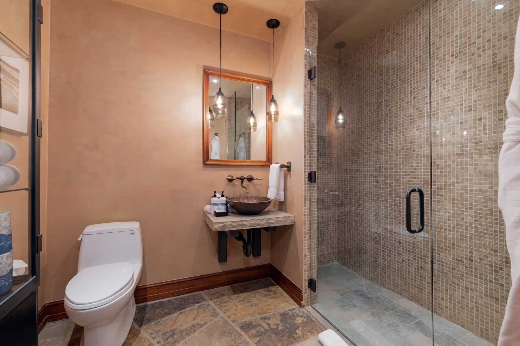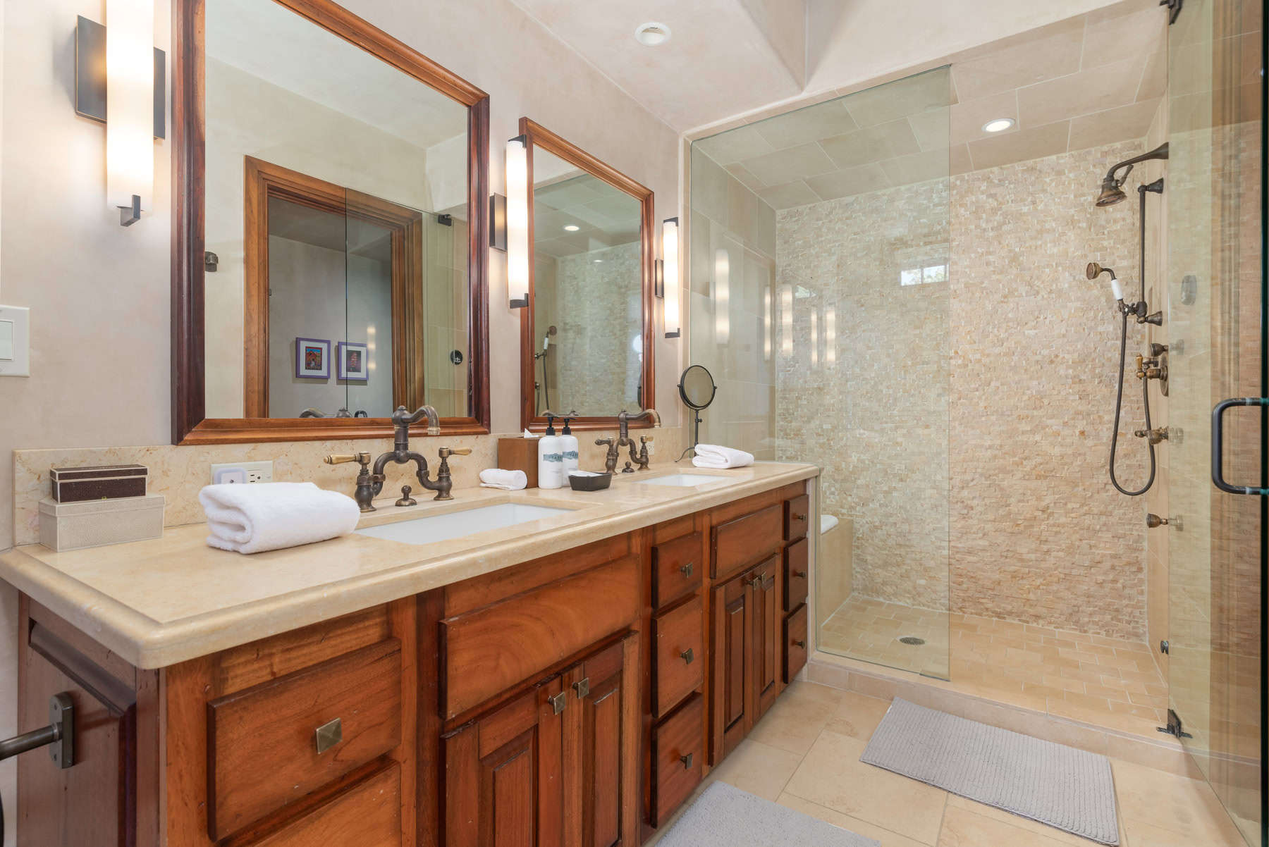 Downstairs you’ll find three spacious bedrooms each appointed with a full bathroom. This residence comfortably accommodates six guests, featuring king beds in each of the first two bedrooms and two twin beds in the third bedroom. In addition, when traveling with a larger group, it’s possible to utilize the den on the main level as a fourth bedroom featuring an exceptionally comfortable sofa bed.