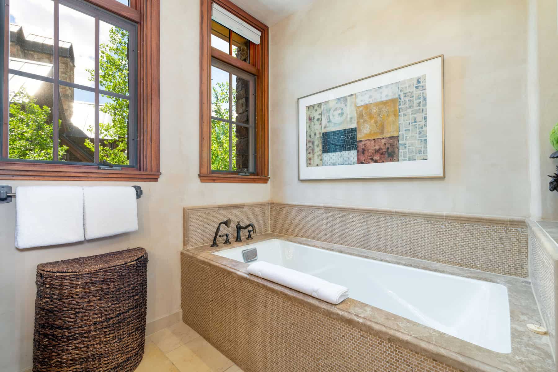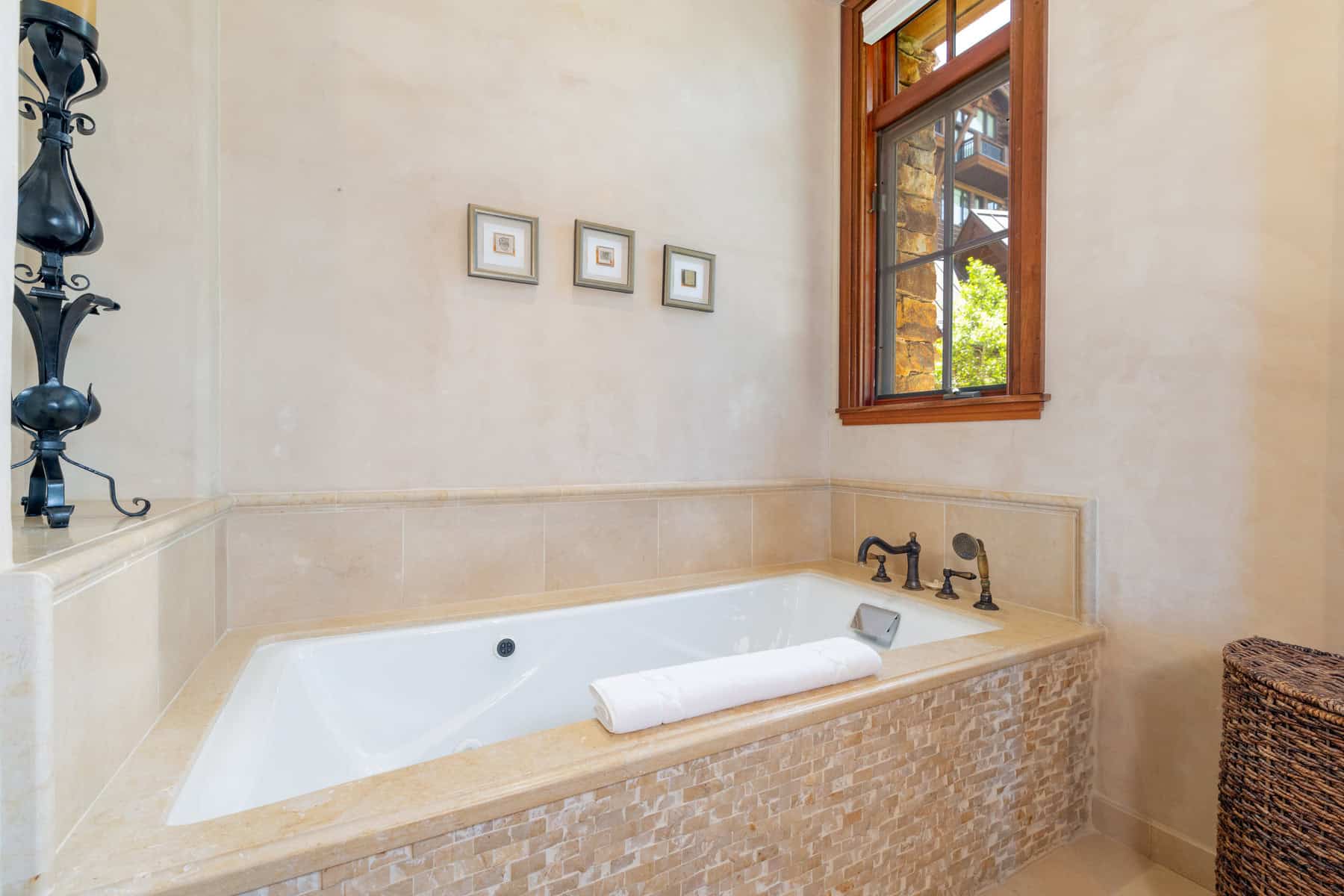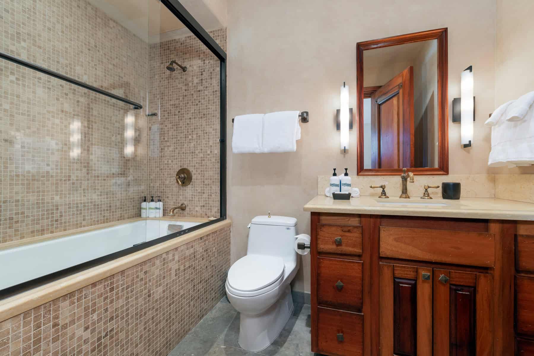 Downstairs you’ll find three spacious bedrooms each appointed with a full bathroom. This residence comfortably accommodates six guests, featuring king beds in each of the first two bedrooms and two twin beds in the third bedroom. In addition, when traveling with a larger group, it’s possible to utilize the den on the main level as a fourth bedroom featuring an exceptionally comfortable sofa bed.