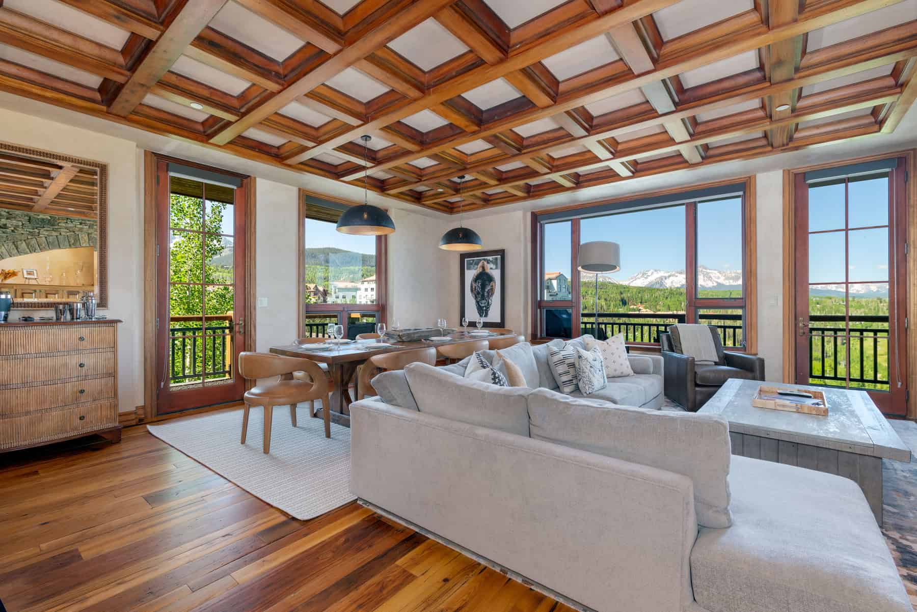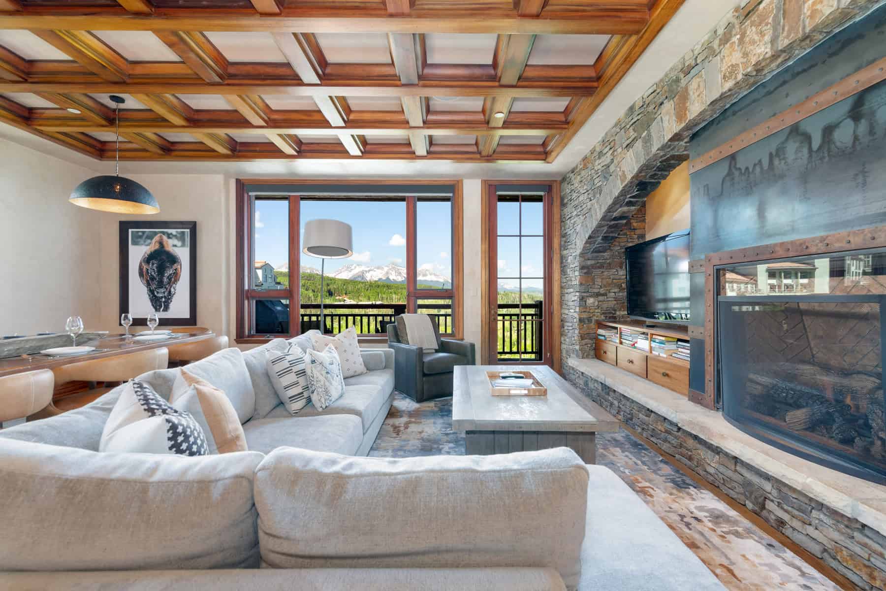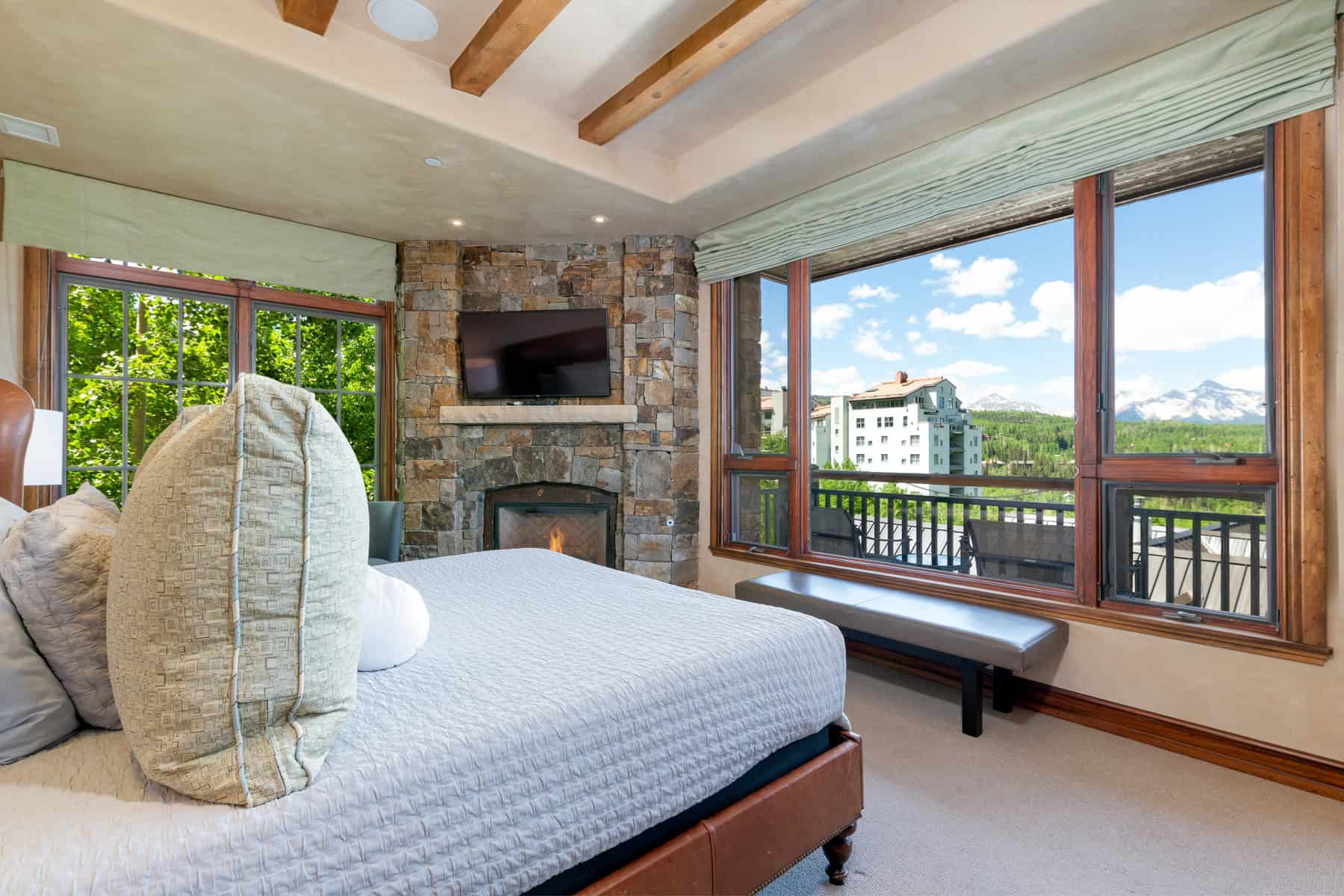 Located in Mountain Village and just minutes from the free Gondola to Telluride, this stately three-bedroom penthouse offers stunning views, stylish decor, luxurious bedding and beautiful, robust finishes. The unique wood beamed ceiling and a large stone and wood fireplace create a custom home feel with unforgettable views.